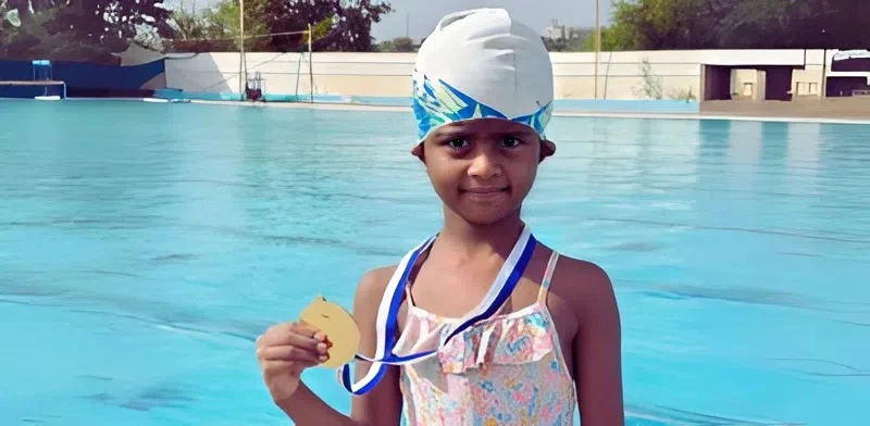 6-year-old Aashritha participated in the Open Water Swim Event at Lake Bodensee, crossing from Lindau in Germany to Bregenz in Austria.