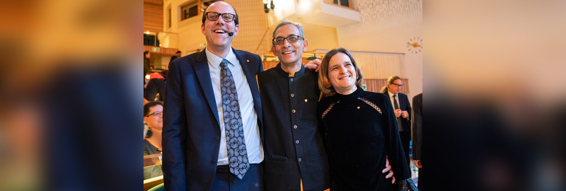 The Nobel Prize’s official Twitter handle shared an image of 2019 economic sciences laureates and friends Abhijit Banerjee, Esther Duflo and Michael Kremer, who used innovative research based on field experiments to develop a new approach to alleviate global poverty.