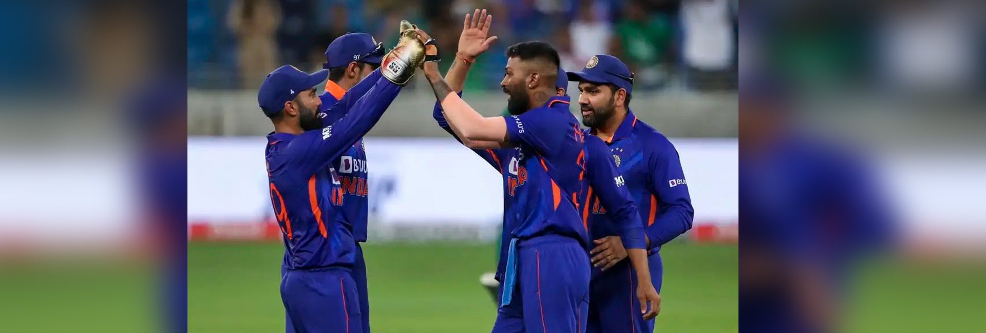 The Indian cricket team celebrates after their T20 win against Pakistan on August 28, 2022 in Dubai.