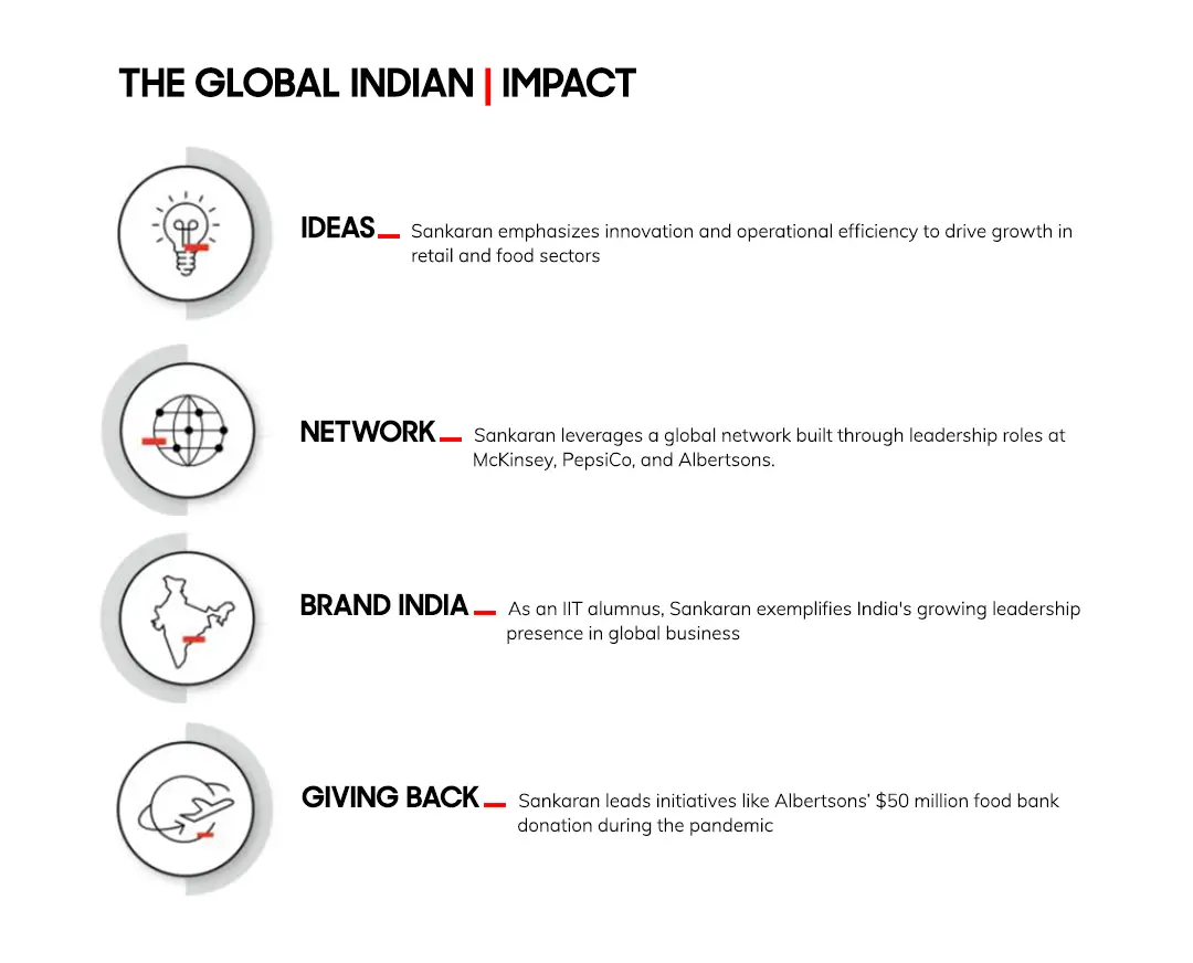 Throughout his career, Sankaran has been a champion of innovation. At Albertsons, he has pushed for adopting new technologies and improving supply chain management to create a seamless shopping experience for customers.