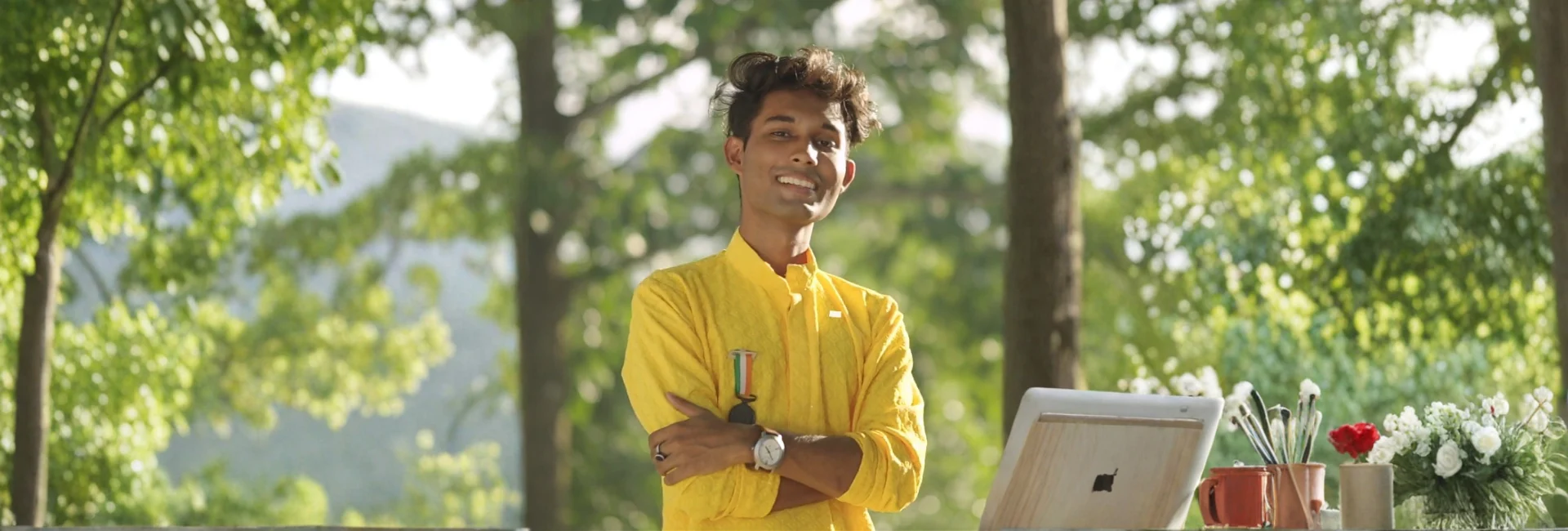 That path, however, took shape far from international galleries and conference halls. Tanuj grew up in Rangia, a small township in Assam’s Kamrup district, in a nuclear household where his father was the sole breadwinner and financial uncertainty was a familiar companion. “From the humble bylanes of Rangia to places I once thought were out of my reach, my roots remind me that beauty often grows from simplicity,” he tells Global Indian.