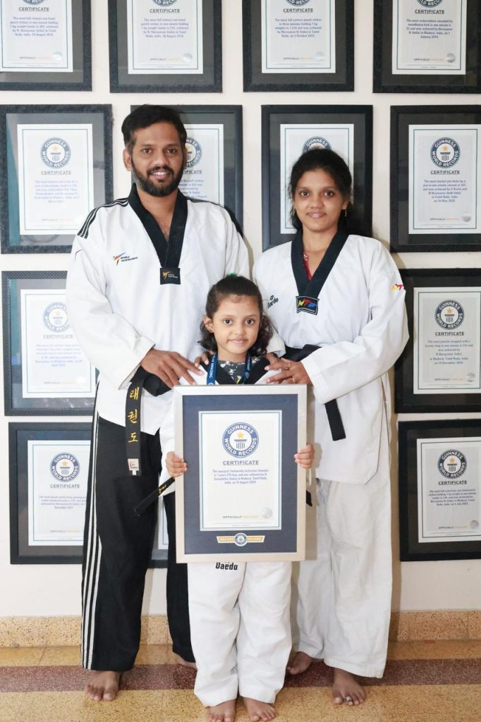 In a recent post, the Guinness World Records wrote, “Seven-year-old girl makes history as the youngest Taekwondo instructor ever aged just seven years and 270 days old! Samyuktha Narayanan is an inspiration to fellow kids in Madurai, India, encouraging them to engage in sports!”