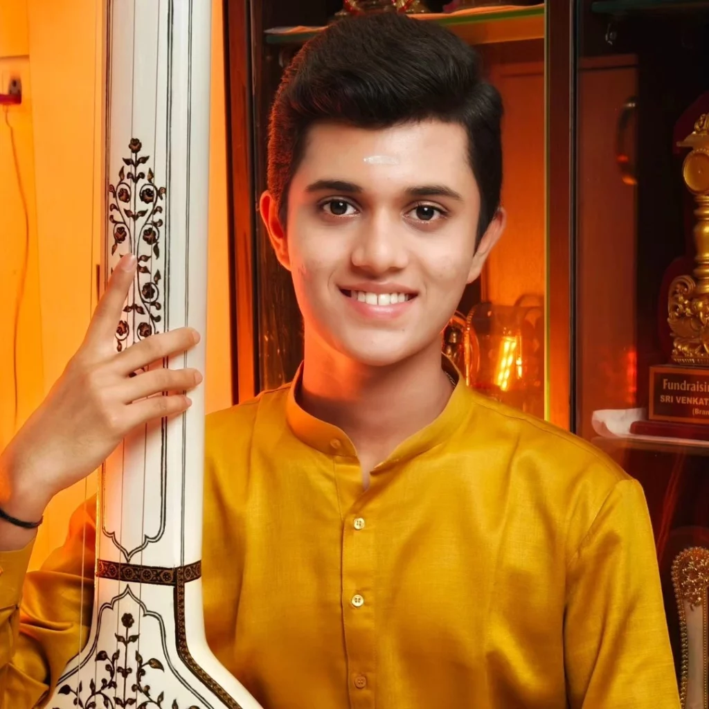 Rahul’s performance history includes prestigious venues like the Madras Music Academy, the Guruvayur Temple, and Tirumala’s Brahmotsavam. His digital footprint is equally impressive, with performances featured on SVBC Channel, MadRasana, and YouTube channels like ‘Strumm Spiritual’ and with mentor Kuldeep Pai for ‘Vande Guru Paramparaam’ series.