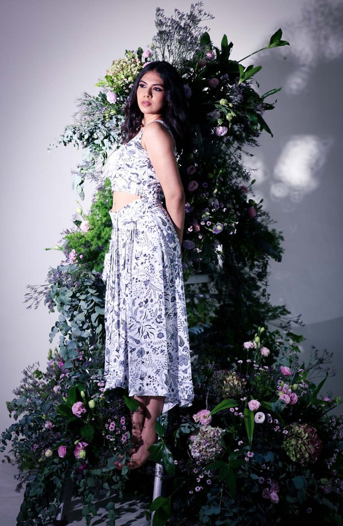 Ten months after she launched her label, she was invited to show her collection at the New York Fashion Week. This was her chance to establish India’s fashion footprint internationally, and to “provide a crucial platform for the story of her collection, Sher-Rani, the Tigress Queen.” The collection tells the tale of the phool wali, or flower garland maker, and how she becomes the local Tigress Queen or Sher-Rani by weaving flower garlands together. In a more contemporary interpretation, the Sher Rani shattered the glass ceiling to provide her children with a brighter future. “The combination of strength, grace, dignity and ferocity is what makes Indian women so remarkable,” Arya smiles. And flowers play an important role in every step of an Indian’s life, too, from birth to cremation.