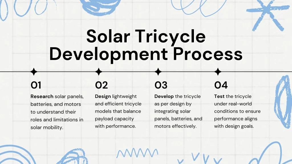 However, the project came with challenges. Generating enough power from the limited solar panel space to support mobility for a total load of 550 lbs (including the vehicle and its payload) required significant problem-solving. He also explored lightweight battery options that maximize energy storage while ensuring a practical range.