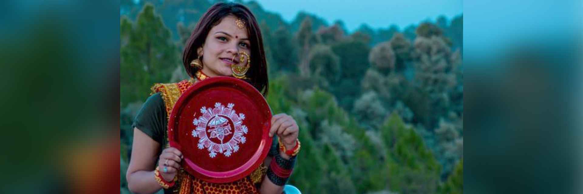 (March 29, 2022) Invoking good tidings is an inherent part of Indian culture. The oft-seen delicate rangoli motifs at entrances of homes add artistic ethos which sometimes lie forgotten. This native of Satoli, 12 km from Mukteshwar, saw this lack of regard for an indigenous artform called Aipan, and preserved it for future generations. Hemlata Kabdwal used to see her mother and elder sister delicately tracing Aipan, a ritualistic folk art of Uttarakhand. “Aipan is made at the entrance of every house on auspicious occasions, and festivals. Not content with the artform confined to just our region, I wanted to popularise it far and wide,” says Hemlata Kabdwal in an interview with Global Indian.
