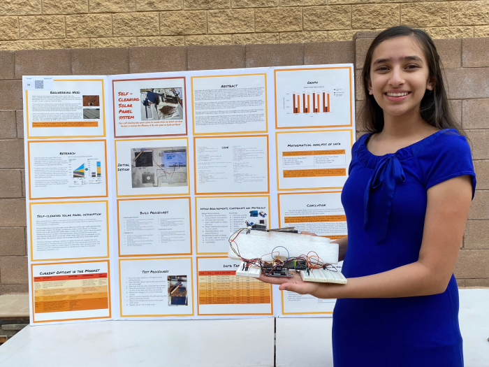 A 15-year-old teen scientist who understood a Nasa problem then went on to invent a self-cleaning solar panel, she explains “Solar panels face dust that decreases efficiency. Nasa declared its Opportunity Mars rover unresponsive after its solar-powered robot went silent during a dust storm.” Prisha increased efficiency with her self-cleaning, self-detecting solar panel system (with a dust sensor that activates a wiper system).