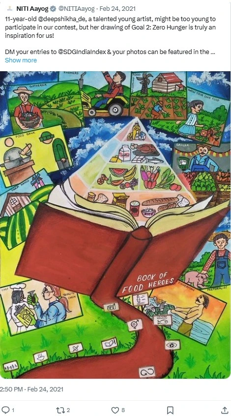 Her talent even caught the attention of NITI Aayog, which shared her painting on SDG Goal 2: Zero Hunger in a tweet.